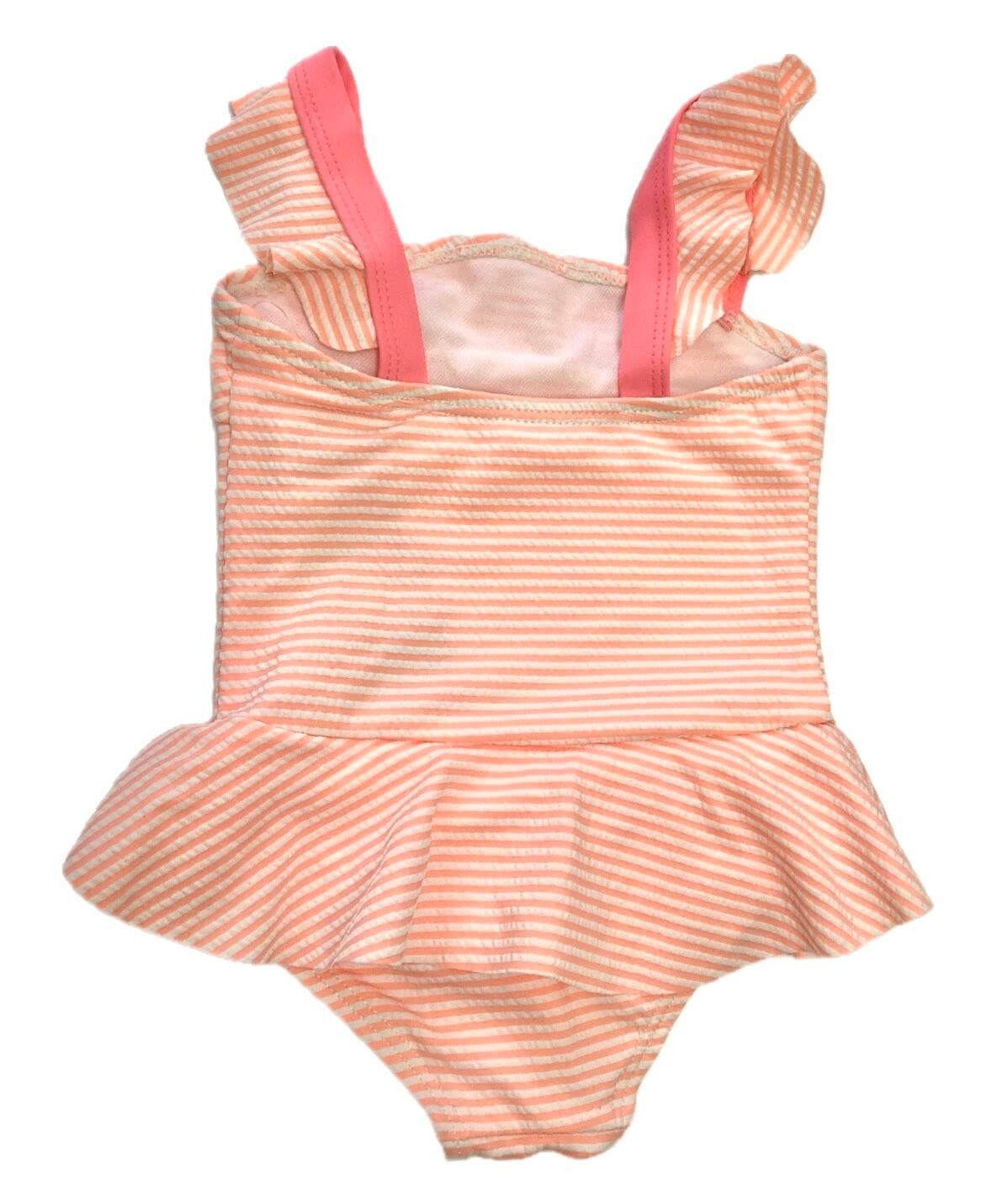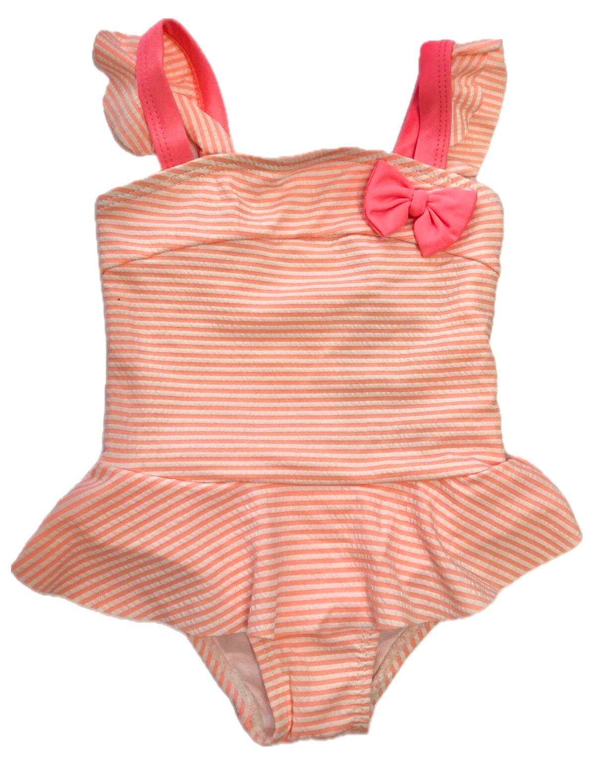 0-6ヶ月 コーラルピンク ボーダー スイミングウエア